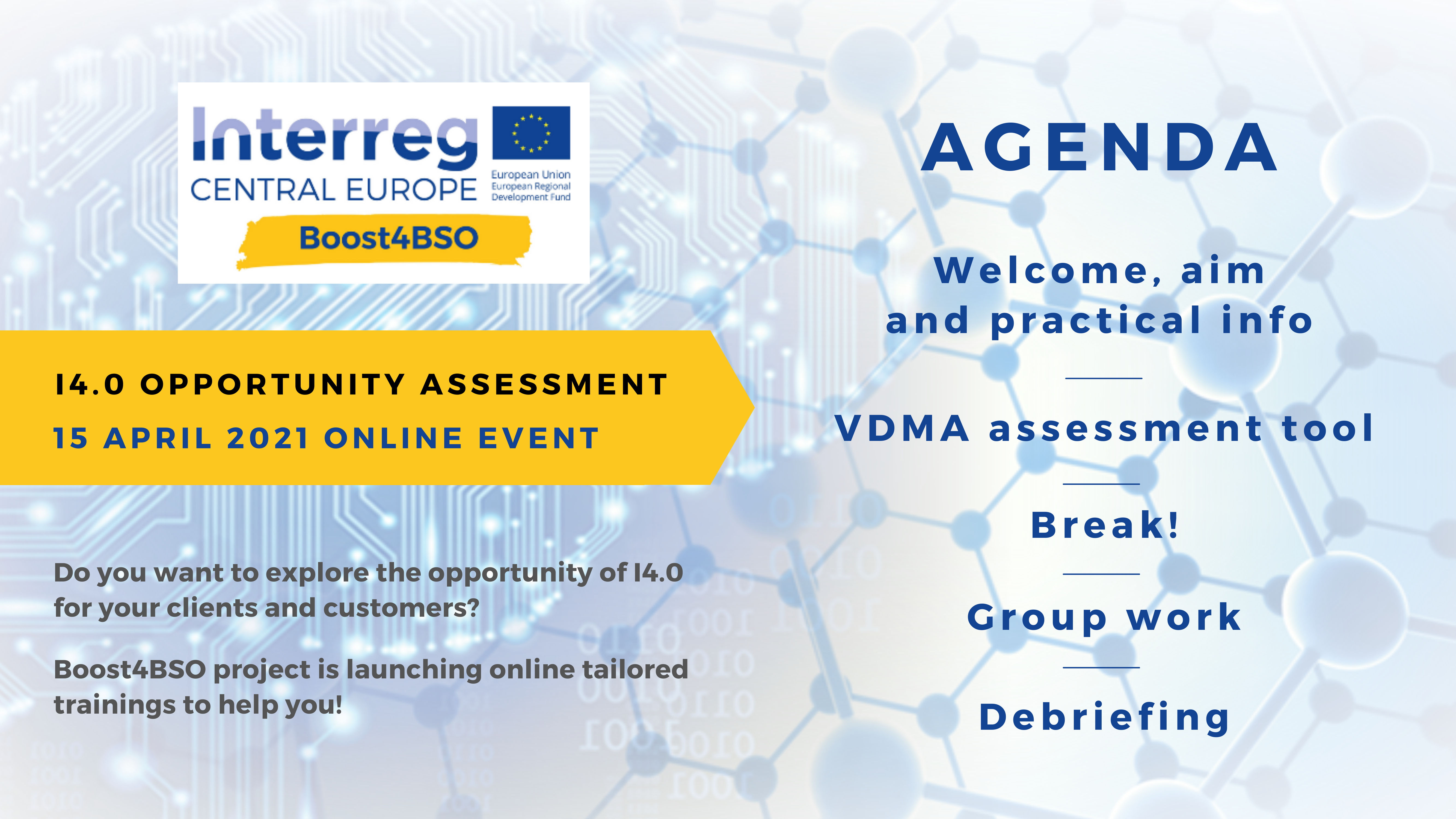 On April 15th 2021, the first of the 4 meetings of the Boost4BSO capacity building and knowledge transfer 2nd wave has been held. The objective of this round of meetings is to share methodologies, tools, best practices and a business support models aimed at encouraging investments in Industry 4.0 with the associated BSOs of the Central European area. The first meeting, co-organized by Friuli Innovazione and MESAP, was dedicated to the use of a Industry 4.0-Readiness tool,…
